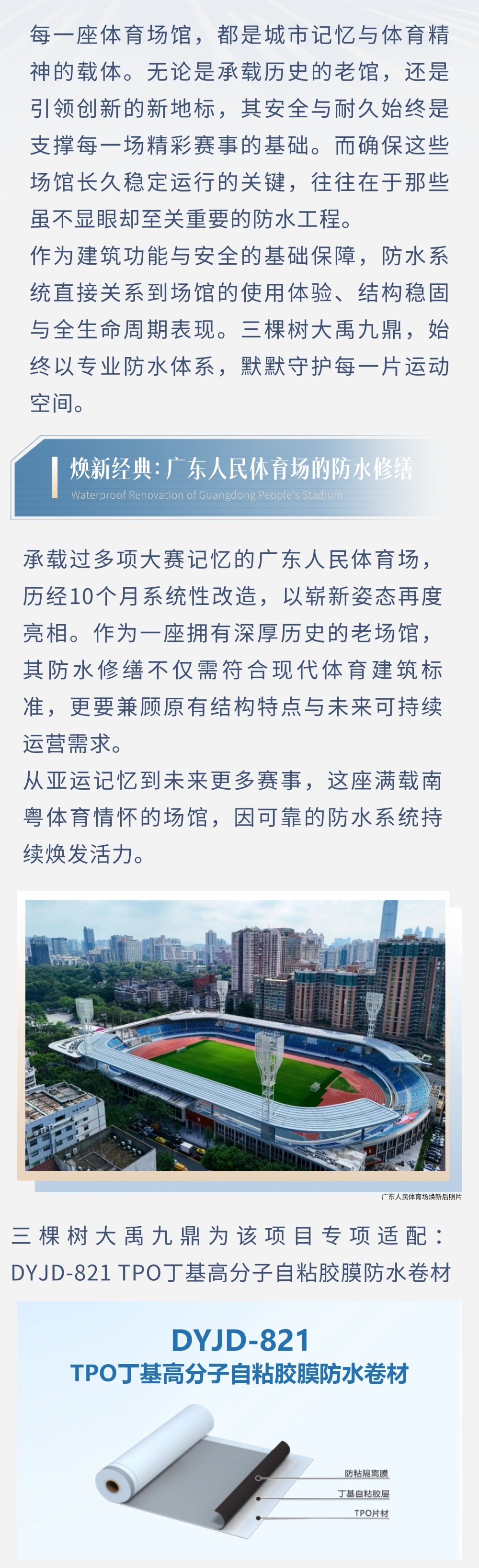 守护运动场 | 三棵树大禹九鼎以专业防水护航体育盛事