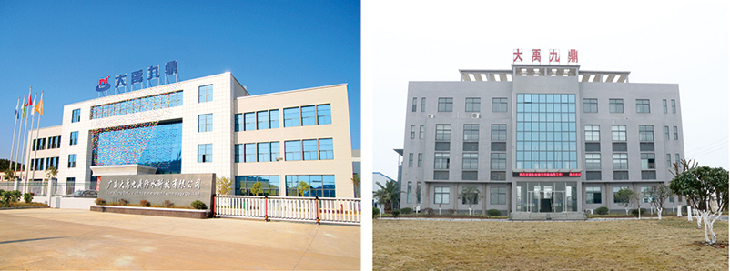 大禹九鼎总部位于广州,实行集团化管理,公司先后成立了工程公司、材料公司,在国内主要省会城市也分别设立了销售分公司和办事处,并在广州、广东清远、湖北孝感三地设立了大型生产研发基地,建成多条改性沥青和高分子卷材生产线、环保涂料生产线,年产改性沥青防水卷材6500万平方米,TPO、HDPE、EVA、PVC等高分子防水卷材5000万平方米,防水涂料和干粉砂浆8万吨。公司营销网络遍布全国并惠及海外,在国内发展了300多家经销商网络,产品同时远销东南亚、澳洲、非洲、欧洲、美洲等多个国家和地区。